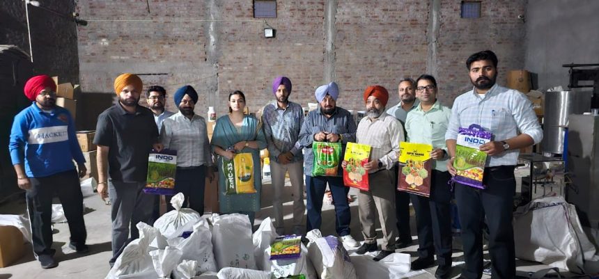 ਲੁਧਿਆਣਾ: ਮੁੱਖ ਮੰਤਰੀ ਪੰਜਾਬ ਭਗਵੰਤ ਸਿੰਘ ਮਾਨ ਦੇ ਆਦੇਸ਼ਾਂ ਅਨੁਸਾਰ ਪੰਜਾਬ ਦੇ ਕਿਸਾਨਾਂ ਨੂੰ ਉੱਚ-ਮਿਆਰੀ ਦੇ ਇਨਪੁੱਟ ਖਾਦਾਂ, ਦਵਾਈਆਂ ਅਤੇ ਬੀਜਾਂ ਦੀ ਨਿਰਵਿਘਨ ਸਪਲਾਈ ਨੂੰ ਮੁੱਖ ਰੱਖਦਿਆਂ ਖੇਤੀਬਾੜੀ ਮੰਤਰੀ ਗੁਰਮੀਤ ਸਿੰਘ ਖੁੱਡੀਆਂ ਅਤੇ ਪ੍ਰਬੰਧਕੀ ਸਕੱਤਰ ਅਰਸ਼ਦੀਪ ਸਿੰਘ ਥਿੰਦ ਦੇ ਦਿਸ਼ਾ ਨਿਰਦੇਸ਼ਾਂ ਹੇਠ ਸੰਯੁਕਤ ਡਾਇਰੈਕਟਰ ਖੇਤੀਬਾੜੀ (ਪੌਦ ਸੁਰੱਖਿਆ) ਡਾ. ਨਰਿੰਦਰ ਸਿੰਘ ਬੈਨੀਪਾਲ ਅਤੇ ਮੁੱਖ ਖੇਤੀਬਾੜੀ ਅਫਸਰ ਲੁਧਿਆਣਾ ਡਾ. ਗੁਰਦੀਪ ਸਿੰਘ ਦੀ ਟੀਮ ਨੇ ਜਗਰਾਉਂ ਵਿਖੇ ਪਰਦੇਸੀ ਢਾਬਾ ਦੇ ਪਿਛਲੇ ਪਾਸੇ ਮਨੋਜ ਕੁਮਾਰ ਪੁੱਤਰ ਰਾਮ ਆਸਰਾ ਵਾਸੀ ਕੋਠੇ ਸ਼ੇਰ ਜੰਗ ਦੇ ਜਗਰਾਉਂ ਦੀ ‘ਰਾਫਾ ਬਾਇਓਟੈਕ’ ਵਿਖੇ ਛਾਪਾ ਮਾਰਿਆ ਗਿਆ।