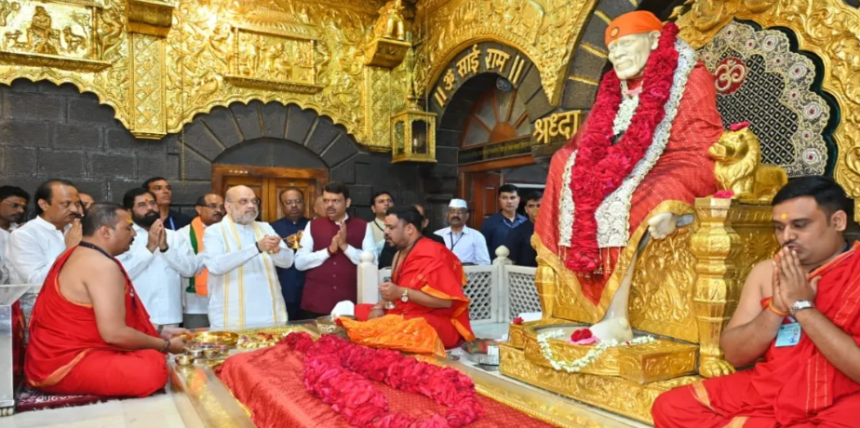 ਨਿਊਜ਼ ਡੈਸਕ: ਕੇਂਦਰੀ ਗ੍ਰਹਿ ਅਤੇ ਸਹਿਕਾਰਤਾ ਮੰਤਰੀ ਅਮਿਤ ਸ਼ਾਹ, ਜੋ ਮਹਾਰਾਸ਼ਟਰ ਦੇ ਇੱਕ ਦਿਨ ਦੇ ਦੌਰੇ ‘ਤੇ ਹਨ, ਨੇ ਐਤਵਾਰ ਨੂੰ ਸ਼ਿਰਡੀ ਦੇ ਸਾਈਂ ਬਾਬਾ ਮੰਦਰ ਵਿੱਚ ਪ੍ਰਾਰਥਨਾ ਕੀਤੀ। ਅਮਿਤ ਸ਼ਾਹ ਦੇ ਨਾਲ, ਰਾਜ ਦੇ ਮੁੱਖ ਮੰਤਰੀ ਦੇਵੇਂਦਰ ਫੜਨਵੀਸ, ਉਪ ਮੁੱਖ ਮੰਤਰੀ ਏਕਨਾਥ ਸ਼ਿੰਦੇ, ਅਜੀਤ ਪਵਾਰ ਅਤੇ ਹੋਰ ਵੀ ਮੌਜੂਦ ਸਨ।