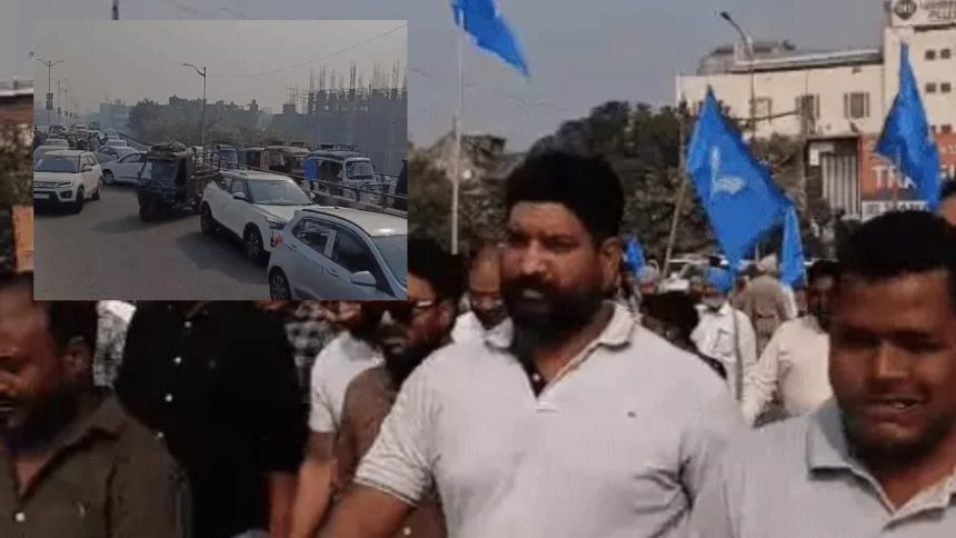 ਇਸ ਘਟਨਾ ਦੇ ਵਿਰੋਧ ਵਿੱਚ ਅੱਜ ਯਾਨੀ ਬੁੱਧਵਾਰ ਨੂੰ ਵਾਲਮੀਕਿ ਸਮਾਜ ਦੇ ਲੋਕਾਂ ਨੇ ਟਰੈਫਿਕ ਨੂੰ ਰੋਕ ਦਿੱਤਾ। ਲੋਕ ਭੰਡਾਰੀ ਪੁਲ ਦੇ ਨੇੜੇ ਬੈਠ ਕੇ ਧਰਨਾ ਪ੍ਰਦਰਸ਼ਨ ਕਰ ਰਹੇ ਹਨ। ਇਸ ਦੌਰਾਨ ਪੁਲੀਸ ਨੇ ਭੰਡਾਰੀ ਪੁਲ ਦੇ ਦੋਵੇਂ ਪਾਸਿਆਂ ਤੋਂ ਆਵਾਜਾਈ ‘ਤੇ ਪੂਰੀ ਤਰ੍ਹਾਂ ਰੋਕ ਲਗਾ ਦਿੱਤੀ ਹੈ।