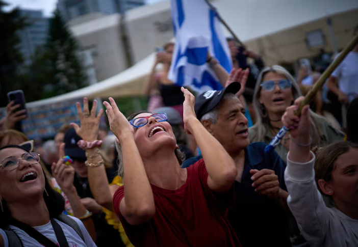 ਜੰਗਬੰਦੀ ਦੇ ਐਲਾਨ ਤੋਂ ਬਾਅਦ ਬੰਧਕਾਂ ਅਤੇ ਕੈਦੀਆਂ ਦੀ ਰਿਹਾਈ ਤੋਂ ਬਾਅਦ ਤੇਲ ਅਵੀਵ ਵਿੱਚ ਬੰਧਕਾਂ ਦੇ ਪਰਿਵਾਰਾਂ ਨੇ ਵੀ ਖੁਸ਼ੀ ਦੇ ਹੰਝੂ ਵਹਾਏ ਅਤੇ ਜਸ਼ਨ ਮਨਾਇਆ। ਯਰੂਸ਼ਲਮ ਵਿੱਚ, ਕੁਝ ਲੋਕਾਂ ਨੇ ਕਿਹਾ, ਅਸੀਂ ਦੋ ਸਾਲ ਦਹਿਸ਼ਤ ਵਿੱਚ ਬਿਤਾਏ, ਅੱਜ ਅਸੀਂ ਰਾਹਤ ਦਾ ਸਾਹ ਲਿਆ ਹੈ।