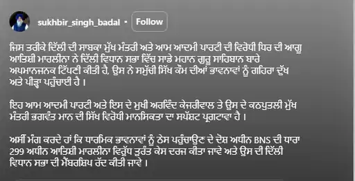 ਸ਼੍ਰੋਮਣੀ ਗੁਰਦੁਆਰਾ ਪ੍ਰਬੰਧਕ ਕਮੇਟੀ ਦੇ ਪ੍ਰਧਾਨ ਐਡਵੋਕੇਟ ਹਰਜਿੰਦਰ ਸਿੰਘ ਧਾਮੀ ਨੇ ਆਮ ਆਦਮੀ ਪਾਰਟੀ ਦੀ ਆਗੂ ਅਤੇ ਦਿੱਲੀ ਦੀ ਸਾਬਕਾ ਮੁੱਖ ਮੰਤਰੀ ਆਤਿਸ਼ੀ ਵੱਲੋਂ ਦਿੱਲੀ ਵਿਧਾਨ ਸਭਾ ਵਿਚ ਸ੍ਰੀ ਗੁਰੂ ਤੇਗ ਬਹਾਦਰ ਸਾਹਿਬ ਜੀ ਬਾਰੇ ਅਪਮਾਨਜਨਕ ਟਿੱਪਣੀ ਕਰਨ ਦੀ ਸਖ਼ਤ ਸ਼ਬਦਾਂ ਵਿਚ ਨਿੰਦਾ ਕਰਦਿਆਂ ਇਸ ਨੂੰ ਆਪ ਆਗੂਆਂ ਦੀ ਘਟੀਆ ਮਾਨਸਿਕਤਾ ਦਾ ਪ੍ਰਗਟਾਵਾ ਕਰਾਰ ਦਿੱਤਾ ਹੈ।