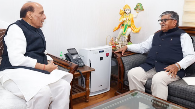 ਚੰਡੀਗੜ੍ਹ : ਪੰਜਾਬ ਦੇ ਰਾਜਪਾਲ ਅਤੇ ਯੂਟੀ ਚੰਡੀਗੜ੍ਹ ਦੇ ਪ੍ਰਸ਼ਾਸਕ ਗੁਲਾਬ ਚੰਦ ਕਟਾਰੀਆ ਨੇ ਐਤਵਾਰ ਨੂੰ ਨਵੀਂ ਦਿੱਲੀ ਵਿੱਚ ਕੇਂਦਰੀ ਰੱਖਿਆ ਮੰਤਰੀ ਰਾਜਨਾਥ ਸਿੰਘ ਨਾਲ ਸ਼ਿਸ਼ਟਾਚਾਰ ਮੁਲਾਕਾਤ ਕੀਤੀ। ਮੀਟਿੰਗ ਦੌਰਾਨ, ਚੰਡੀਗੜ੍ਹ ਵਿੱਚ ਇੱਕ ਸੈਨਿਕ ਸਕੂਲ ਦੀ ਸਥਾਪਨਾ ਅਤੇ ਪੰਜਾਬ ਵਿੱਚ ਸਰਹੱਦ ਪਾਰੋਂ ਨਸ਼ੀਲੇ ਪਦਾਰਥਾਂ ਅਤੇ ਹਥਿਆਰਾਂ ਦੀ ਤਸਕਰੀ ਨੂੰ ਰੋਕਣ ਲਈ ਡਰੋਨ ਵਿਰੋਧੀ ਪ੍ਰਣਾਲੀ ਨੂੰ ਹੋਰ ਮਜ਼ਬੂਤ ਕਰਨ ਬਾਰੇ ਵਿਸਥਾਰ ਵਿੱਚ ਚਰਚਾ ਕੀਤੀ ਗਈ।
