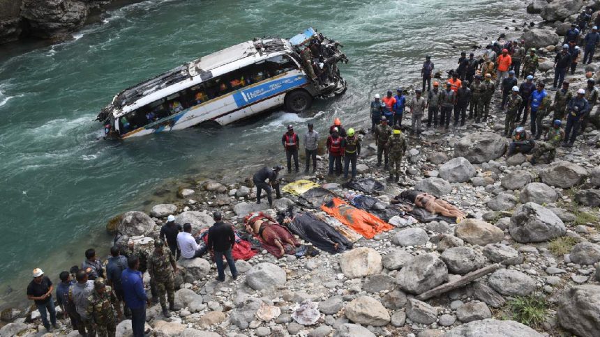 ਨੇਪਾਲ : ਭਾਰਤ ਦੇ ਗੁਆਂਢੀ ਦੇਸ਼ ਨੇਪਾਲ ਵਿੱਚ ਇੱਕ ਦਰਦਨਾਕ ਹਾਦਸਾ ਵਾਪਰਿਆ ਹੈ। ਕਾਠਮੰਡੂ ਤੋਂ ਓਖਲਧੁੰਗਾ ਜਾ ਰਹੀ ਇੱਕ ਯਾਤਰੀ ਬੱਸ ਤਾਮਾਕੋਸ਼ੀ ਨਦੀ ਵਿੱਚ ਡਿੱਗ ਗਈ। ਇਸ ਹਾਦਸੇ ਵਿੱਚ 12 ਯਾਤਰੀਆਂ ਦੀ ਮੌਤ ਦੀ ਪੁਸ਼ਟੀ ਹੋਈ ਹੈ। ਹੁਣ ਤੱਕ ਮਿਲੀ ਜਾਣਕਾਰੀ ਮੁਤਾਬਕ ਅੱਠ ਹੋਰ ਲੋਕ ਜ਼ਖ਼ਮੀ ਹੋਏ ਹਨ, ਜਿਨ੍ਹਾਂ ਨੂੰ ਹਸਪਤਾਲ ਵਿੱਚ ਭਰਤੀ ਕਰਵਾਇਆ ਗਿਆ ਹੈ ਅਤੇ ਉਨ੍ਹਾਂ ਦਾ ਇਲਾਜ ਚੱਲ ਰਿਹਾ ਹੈ।
