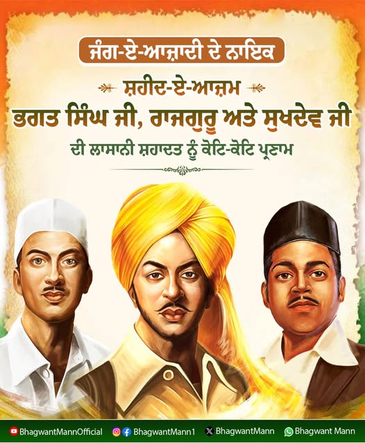 ਪੰਜਾਬ ਦੇ ਮੁੱਖ ਮੰਤਰੀ ਭਗਵੰਤ ਮਾਨ, ਦੇਸ਼ ਦੇ ਪ੍ਰਧਾਨ ਮੰਤਰੀ ਨਰੇਂਦਰ ਮੋਦੀ ਅਤੇ ਹੋਰ ਵੱਡੇ ਆਗੂਆਂ ਨੇ ਇਸ ਸ਼ਹਾਦਤ ਨੂੰ ਸਿਜਦਾ ਕਰਦਿਆਂ ਐਕਸ ਉੱਤੇ ਪੋਸਟਾਂ ਸਾਂਝੀਆਂ ਕੀਤੀਆਂ ਹਨ। ਮੁੱਖ ਮੰਤਰੀ ਭਗਵੰਤ ਮਾਨ ਕਿਹਾ ਕਿ ” ਜੰਗ-ਏ-ਆਜ਼ਾਦੀ ਦੇ ਮਹਾਨਾਇਕ ਸ਼ਹੀਦ-ਏ-ਆਜ਼ਾਮ ਭਗਤ ਸਿੰਘ, ਰਾਜਗੁਰੂ ਤੇ ਸੁਖਦੇਵ ਜੀ ਦੀ ਮਹਾਨ ਸ਼ਹਾਦਤ ਨੂੰ ਕੋਟਿ-ਕੋਟਿ ਪ੍ਰਣਾਮ ਕਰਦੇ ਹਾਂ। ਸਾਡੇ ਅਣਖੀ ਯੋਧਿਆਂ ਨੇ ਦੇਸ਼ ਦੀ ਆਜ਼ਾਦੀ ਲਈ ਫ਼ਾਂਸੀ ਦੇ ਰੱਸਿਆਂ ਨੂੰ ਚੁੰਮਿਆ ਤੇ ਹੱਸ ਕੇ ਸ਼ਹਾਦਤ ਦਾ ਜਾਮ ਪੀਤਾ। ਇਹ ਮਹਾਨ ਸ਼ਹੀਦੀਆਂ ਸਾਡੀਆਂ ਆਉਣ ਵਾਲੀਆਂ ਪੀੜ੍ਹੀਆਂ ਨੂੰ ਸਦਾ ਪ੍ਰੇਰਿਤ ਕਰਦੀਆਂ ਰਹਿਣਗੀਆਂ।”