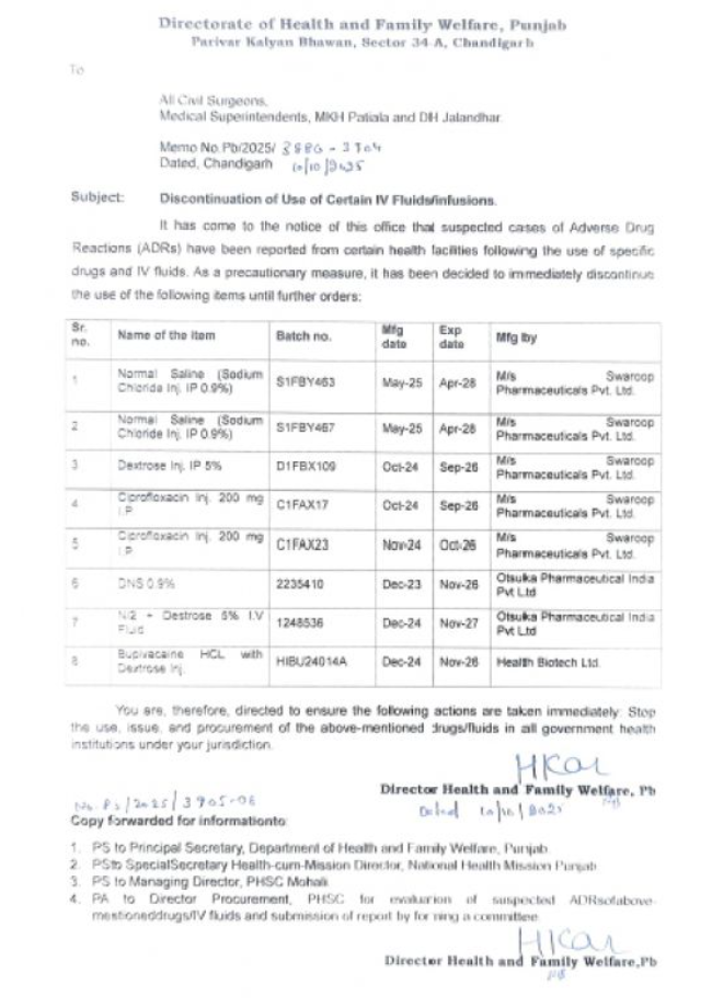 ਸਿਹਤ ਅਤੇ ਪਰਿਵਾਰ ਭਲਾਈ ਡਾਇਰੈਕਟੋਰੇਟ ਨੇ ਇਸ ਸਬੰਧ ਵਿੱਚ ਆਦੇਸ਼ ਜਾਰੀ ਕੀਤੇ ਹਨ। ਇਹ ਫੈਸਲਾ ਮਰੀਜ਼ਾਂ ਨੂੰ ਦਵਾਈਆਂ ਦੇਣ ਤੋਂ ਬਾਅਦ ਪ੍ਰਤੀਕੂਲ ਪ੍ਰਤੀਕ੍ਰਿਆਵਾਂ ਦੀਆਂ ਸ਼ਿਕਾਇਤਾਂ ਤੋਂ ਬਾਅਦ ਲਿਆ ਗਿਆ। ਤਿੰਨ ਫਾਰਮਾਸਿਊਟੀਕਲ ਕੰਪਨੀਆਂ ਦੁਆਰਾ ਨਿਰਮਿਤ ਇਨ੍ਹਾਂ ਦਵਾਈਆਂ ‘ਤੇ ਪੂਰੀ ਤਰ੍ਹਾਂ ਪਾਬੰਦੀ ਲਗਾ ਦਿੱਤੀ ਗਈ ਹੈ।