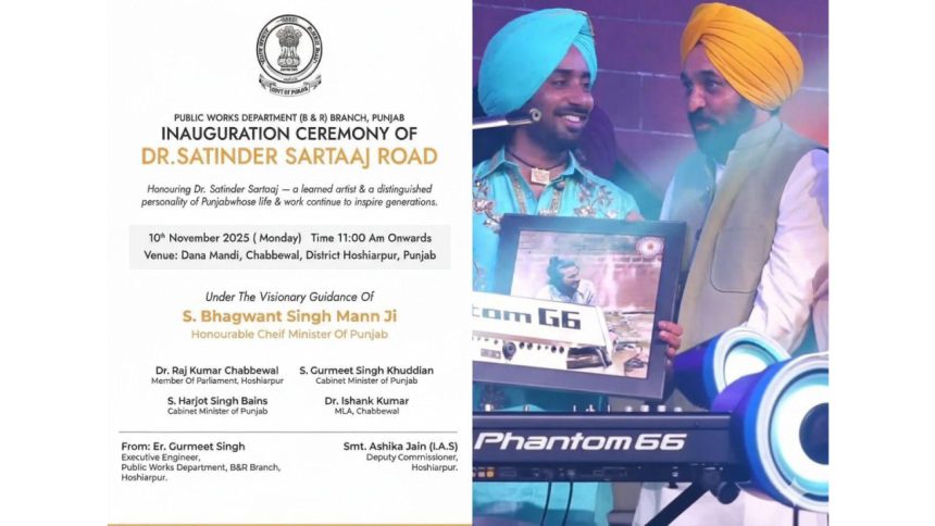 ਚੰਡੀਗੜ੍ਹ: ਪੰਜਾਬ ਸਰਕਾਰ ਨੇ ਇੱਕ ਵਾਰ ਫਿਰ ਸਾਬਤ ਕਰ ਦਿੱਤਾ ਹੈ ਕਿ ਇਹ ਨਾ ਸਿਰਫ਼ ਵਿਕਾਸ ਲਈ ਕੰਮ ਕਰਦੀ ਹੈ, ਸਗੋਂ ਪੰਜਾਬ ਦੀ ਮਿੱਟੀ ਦੀ ਖੁਸ਼ਬੂ, ਸਾਡੀ ਕਲਾ, ਸਾਡੀ ਸੱਭਿਆਚਾਰ ਅਤੇ ਪੰਜਾਬ ਨੂੰ ਦੁਨੀਆ ਭਰ ਵਿੱਚ ਚਮਕਾਉਣ ਵਾਲੇ ਕਲਾਕਾਰਾਂ ਦੇ ਮਾਣ ਦੀ ਪੂਰੀ ਜ਼ਿੰਮੇਵਾਰੀ ਵੀ ਲੈਂਦੀ ਹੈ। ਇਸ ਦ੍ਰਿਸ਼ਟੀਕੋਣ ਨੂੰ ਧਿਆਨ ਵਿੱਚ ਰੱਖਦੇ ਹੋਏ, ਹੁਸ਼ਿਆਰਪੁਰ ਜ਼ਿਲ੍ਹੇ ਦੇ ਚੱਬੇਵਾਲ ਖੇਤਰ ਵਿੱਚ ਇੱਕ ਪ੍ਰਮੁੱਖ ਸੜਕ ਦਾ ਨਾਮ ਹੁਣ “ਡਾ. ਸਤਿੰਦਰ ਸਰਤਾਜ ਰੋਡ” ਰੱਖਿਆ ਜਾ ਰਿਹਾ ਹੈ। ਇਹ ਕਦਮ ਸਿਰਫ਼ ਇੱਕ ਸੜਕ ਦਾ ਨਾਮ ਬਦਲਣਾ ਨਹੀਂ ਹੈ, ਸਗੋਂ ਇੱਕ ਅਜਿਹੇ ਕਲਾਕਾਰ ਨੂੰ ਸਨਮਾਨਿਤ ਕਰਨ ਦੀ ਵਚਨਬੱਧਤਾ ਹੈ ਜਿਸਨੇ ਆਪਣੀ ਸੂਫੀ ਆਵਾਜ਼, ਕਵਿਤਾ ਅਤੇ ਨਿਮਰਤਾ ਨਾਲ ਹਰ ਪੰਜਾਬੀ ਨੂੰ ਮਾਣ ਦਿਵਾਇਆ ਹੈ।