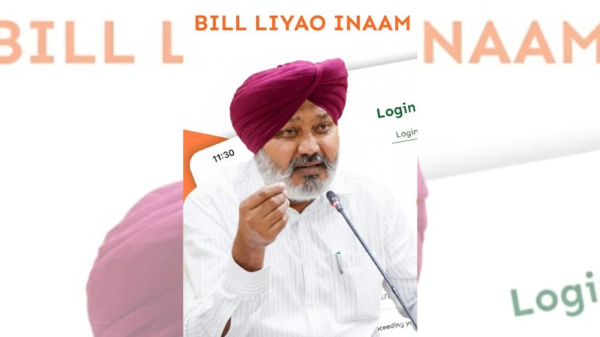 ਮੁੱਖ ਮੰਤਰੀ ਭਗਵੰਤ ਸਿੰਘ ਮਾਨ ਦੁਆਰਾ ਸਤੰਬਰ 2023 ਵਿੱਚ ਸ਼ੁਰੂ ਕੀਤੀ ਗਈ ‘ਬਿੱਲ ਲਿਆਓ ਇਨਾਮ ਪਾਓ’ ਸਕੀਮ ਅਤੇ ਇਸ ਲਈ ਜਾਰੀ ‘ਮੇਰਾ ਬਿੱਲ’ ਐਪ ਦਾ ਉਦੇਸ਼ ਜ਼ਿੰਮੇਵਾਰ ਖਪਤਕਾਰਾਂ ਅਤੇ ਕਰ ਪਾਲਣਾ ਦੀ ਸੰਸਕ੍ਰਿਤੀ ਨੂੰ ਉਤਸ਼ਾਹਿਤ ਕਰਨਾ ਹੈ। ਇਸ ਸਕੀਮ ਵਿੱਚ ਕੱਚਾ ਤੇਲ, ਪੈਟਰੋਲ, ਡੀਜ਼ਲ, ਹਵਾਬਾਜ਼ੀ ਟਰਬਾਈਨ ਬਾਲਣ, ਅਤੇ ਕੁਦਰਤੀ ਗੈਸ, ਸ਼ਰਾਬ, ਰਾਜ ਤੋਂ ਬਾਹਰ ਦੀਆਂ ਖਰੀਦਦਾਰੀ ਅਤੇ ਬਿਜ਼ਨਸ ਤੋਂ ਬਿਜ਼ਨਸ ਲੈਣ-ਦੇਣ ਸਮੇਤ ਪੈਟਰੋਲੀਅਮ ਉਤਪਾਦਾਂ ਨਾਲ ਸਬੰਧਤ ਬਿੱਲ ਸ਼ਾਮਲ ਨਹੀਂ ਹਨ। ਨਿਰਪੱਖਤਾ ਅਤੇ ਸੰਚਾਲਨ ਇਮਾਨਦਾਰੀ ਨੂੰ ਯਕੀਨੀ ਬਣਾਉਣ ਲਈ ਸਿਰਫ਼ ਪਿਛਲੇ ਮਹੀਨੇ ਦੌਰਾਨ ਕੀਤੀਆਂ ਗਈਆਂ ਖਰੀਦਾਂ ਦੇ ਬਿੱਲ ਹੀ ਡਰਾਅ ਲਈ ਯੋਗ ਹਨ।