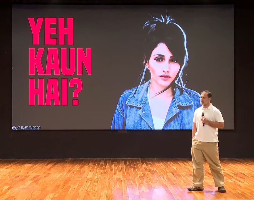 ਆਪਣੀ ਕਾਨਫੰਰਸ ਵਿੱਚ ਰਾਹੁਲ ਗਾਂਧੀ ਨੇ ਹਰਿਆਣਾ ਦੀ ਵੋਟਰ ਸੂਚੀ ਦਿਖਾਈ ਅਤੇ ਕਿਹਾ ਕਿ ਬ੍ਰਾਜ਼ੀਲ ਦੀ ਇੱਕ ਮਾਡਲ ਨੇ ਹਰਿਆਣਾ ਚੋਣਾਂ ਦੌਰਾਨ 22 ਵਾਰ ਵੋਟ ਪਾਈ। ਰਾਹੁਲ ਗਾਂਧੀ ਨੇ ਉਸ ਮਾਡਲ ਦੀ ਫੋਟੋ ਦਿਖਾਈ ਤੇ ਹਰਿਆਣਾ ਦੀ ਵੋਟਰ ਸੂਚੀ ਵਿੱਚ ਇੱਕ ਬ੍ਰਾਜ਼ੀਲੀ ਔਰਤ ਦੀ ਭੂਮਿਕਾ ‘ਤੇ ਸਵਾਲ ਉਠਾਏ। ਉਨ੍ਹਾਂ ਦਾਅਵਾ ਕੀਤਾ ਕਿ ਮਾਡਲ ਨੇ 22 ਵਾਰ ਵੋਟ ਪਾਈ ਸੀ। ਉਨ੍ਹਾਂ ਦਾਅਵਾ ਕੀਤਾ ਕਿ ਹਰਿਆਣਾ ਵਿੱਚ ਪੰਜ ਸ਼੍ਰੇਣੀਆਂ ਵਿੱਚ 25 ਲੱਖ ਵੋਟਾਂ ਚੋਰੀ ਹੋ ਗਈਆਂ। ਇੱਕ ਹੋਰ ਔਰਤ ਨੇ ਇੱਕ ਵਿਧਾਨ ਸਭਾ ਹਲਕੇ ਵਿੱਚ 100 ਵਾਰ ਵੋਟ ਪਾਈ।
