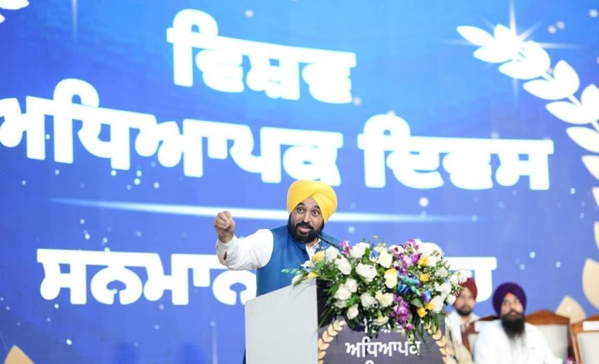 ਮੁੱਖ ਮੰਤਰੀ ਭਗਵੰਤ ਸਿੰਘ ਮਾਨ ਦੀ ਅਗਵਾਈ ਹੇਠ ਪੰਜਾਬ ਸਰਕਾਰ ਨੇ ਸਿੱਖਿਆ ਦੇ ਖੇਤਰ ਵਿੱਚ ਕੀਤੀਆਂ ਕ੍ਰਾਂਤੀਕਾਰੀ ਤਬਦੀਲੀਆਂ ਨੇ ਪੂਰੇ ਦੇਸ਼ ਲਈ ਇੱਕ ਮਿਸਾਲ ਕਾਇਮ ਕੀਤੀ ਹੈ। ਵਿਸ਼ਵ ਅਧਿਆਪਕ ਦਿਵਸ ਮੌਕੇ ਸ੍ਰੀ ਆਨੰਦਪੁਰ ਸਾਹਿਬ ਵਿੱਚ ਹੋਏ ਰਾਜ ਪੱਧਰੀ ਸਮਾਗਮ ਵਿੱਚ, ਮੁੱਖ ਮੰਤਰੀ ਨੇ ਅਧਿਆਪਕਾਂ ਨੂੰ “ਰਾਸ਼ਟਰ ਨਿਰਮਾਤਾ” ਦੱਸਿਆ ਅਤੇ ਨੌਜਵਾਨਾਂ ਨੂੰ ਪੰਜਾਬ ਦੀ ਸ਼ਾਨਦਾਰ ਵਿਰਾਸਤ ਨਾਲ ਜੋੜਨ ਦੀ ਅਪੀਲ ਕੀਤੀ। ਮੁੱਖ ਮੰਤਰੀ ਨੇ ਕਿਹਾ ਕਿ ਅਧਿਆਪਨ ਇੱਕ ਪੇਸ਼ਾ ਨਹੀਂ ਹੈ ਸਗੋਂ “ਵਿਦਿਆਰਥੀਆਂ ਦੇ ਭਵਿੱਖ ਨੂੰ ਰੌਸ਼ਨ ਕਰਨ ਲਈ ਇੱਕ ਪਵਿੱਤਰ ਮਿਸ਼ਨ” ਹੈ। ਇੱਕ ਅਧਿਆਪਕ ਦੇ ਪੁੱਤਰ ਹੋਣ ਦੇ ਨਾਤੇ, ਉਨ੍ਹਾਂ ਕਿਹਾ ਕਿ ਉਹ ਜਾਣਦੇ ਹਨ ਕਿ ਇੱਕ ਅਧਿਆਪਕ ਆਪਣੇ ਵਿਦਿਆਰਥੀਆਂ ਦੇ ਜੀਵਨ ਨੂੰ ਕਿਸ ਸਮਰਪਣ ਅਤੇ ਸ਼ਰਧਾ ਨਾਲ ਘੜਦਾ ਹੈ।