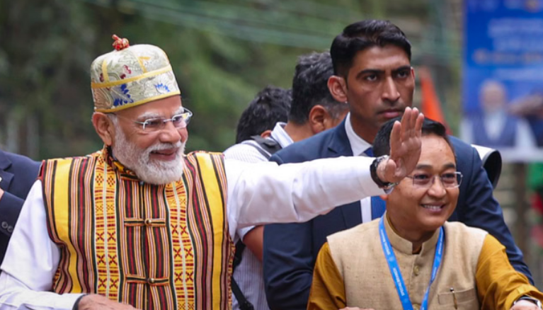 ਲੇਪਚਾ ਕੋਟ ਪਹਿਨੇ ਪ੍ਰਧਾਨ ਮੰਤਰੀ ਮੋਦੀ ਦਾ ਲਿਬਿੰਗ ਮਿਲਟਰੀ ਹੈਲੀਪੈਡ ‘ਤੇ ਪਹੁੰਚਣ ‘ਤੇ ਰਾਜਪਾਲ ਓਮ ਪ੍ਰਕਾਸ਼ ਮਾਥੁਰ, ਮੁੱਖ ਮੰਤਰੀ ਪ੍ਰੇਮ ਸਿੰਘ ਤਮਾਂਗ ਅਤੇ ਹੋਰ ਸੀਨੀਅਰ ਨੇਤਾਵਾਂ ਨੇ ਸਵਾਗਤ ਕੀਤਾ। ਹੈਲੀਪੈਡ ਤੋਂ ਸ਼ੁਰੂ ਹੋਇਆ ਰੋਡ ਸ਼ੋਅ ਲੋਕ ਭਵਨ ਵਿਖੇ ਸਮਾਪਿਤ ਹੋਇਆ। ਪ੍ਰਧਾਨ ਮੰਤਰੀ ਇੱਥੇ ਰਾਤ ਨੂੰ ਰੁਕਣਗੇ। ਖੁੱਲ੍ਹੀ ਕਾਰ ਵਿੱਚ ਸੀਐਮ ਤਮਾਂਗ ਪੀਐਮ ਮੋਦੀ ਦੇ ਖੱਬੇ ਪਾਸੇ ਸਨ ਅਤੇ ਪ੍ਰਦੇਸ਼ ਭਾਜਪਾ ਪ੍ਰਧਾਨ ਡੀ.ਆਰ. ਥਾਪਾ ਹਾਜ਼ਿਰ ਸਨ।