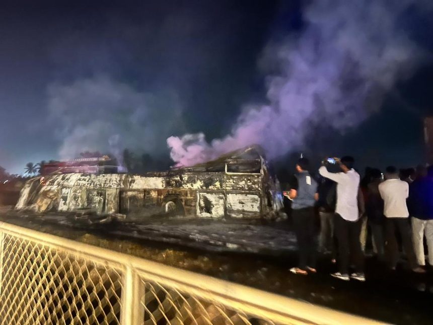 ਸਾਹਮਣੇ ਆਈ ਜਾਣਕਾਰੀ ਅਨੁਸਾਰ ਬੀਤੀ ਦੇਰ ਰਾਤ ਚਿਤਰਦੁਰਗਾ ਵਿੱਚ ਇੱਕ ਟਰੱਕ ਇੱਕ ਪ੍ਰਾਈਵੇਟ ਸਲੀਪਰ ਬੱਸ ਨਾਲ ਇੰਨੀ ਜ਼ੋਰ ਨਾਲ ਟਕਰਾ ਗਿਆ ਕਿ ਬੱਸ ਕੁਝ ਹੀ ਦੇਰ ਵਿੱਚ ਅੱਗ ਦੇ ਗੋਲੇ ਵਿੱਚ ਬਦਲ ਗਈ। ਇਸ ਵਿੱਚ ਸਵਾਰ ਘਟੋ ਘੱਟ 10 ਲੋਕ ਸੜ ਕੇ ਮਰ ਗਏ। ਹਾਲਾਂਕਿ ਕੁਝ ਮੀਡੀਆ ਰਿਪੋਰਟਾਂ ਵਿੱਚ ਇਹ ਅੰਕੜਾ 12 ਅਤੇ 17 ਦੱਸਿਆ ਗਿਆ ਹੈ। ਇਹ ਹਾਦਸਾ ਰਾਜ ਮਾਰਗ NH-48 ‘ਤੇ ਵਾਪਰਿਆ। ਬੱਸ ਬੰਗਲੁਰੂ ਤੋਂ ਗੋਕਰਨ ਜਾ ਰਹੀ ਸੀ। ਰਿਪੋਰਟਾਂ ਅਨੁਸਾਰ ਇਸ ਵਿੱਚ 30 ਤੋਂ ਵੱਧ ਯਾਤਰੀ ਸਵਾਰ ਸਨ।