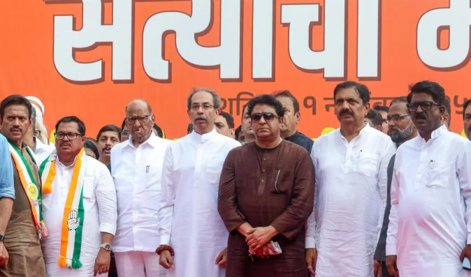 ਠਾਕਰੇ ਭਰਾਵਾਂ ਅਤੇ ਪਵਾਰ, ਜੋ ਸਾਲਾਂ ਤੋਂ ਰਾਜਨੀਤਿਕ ਦੂਰੀ ਤੋਂ ਬਾਅਦ ਇੱਕ ਦੂਜੇ ਦੇ ਨੇੜੇ ਆ ਰਹੇ ਹਨ, ਨੇ ਵੀਰਵਾਰ ਨੂੰ ਮੁੰਬਈ ਵਿੱਚ ਇੱਕ ਵੱਡੀ ਸਾਂਝੀ ਰੈਲੀ ਦੇ ਵੇਰਵਿਆਂ ਨੂੰ ਅੰਤਿਮ ਰੂਪ ਦੇਣ ਲਈ ਇੱਕ ਮੀਟਿੰਗ ਕੀਤੀ। ਸੀਨੀਅਰ ਕਾਂਗਰਸ ਨੇਤਾ ਨਸੀਮ ਖਾਨ, ਕਿਸਾਨ ਅਤੇ ਵਰਕਰਜ਼ ਪਾਰਟੀ (ਪੀਡਬਲਯੂਪੀ) ਦੇ ਜਯੰਤ ਪਾਟਿਲ ਅਤੇ ਖੱਬੇ-ਪੱਖੀ ਪਾਰਟੀਆਂ ਦੇ ਆਗੂ ਵੀ ਮੌਜੂਦ ਸਨ। ਸੂਬਾ ਕਾਂਗਰਸ ਪ੍ਰਧਾਨ ਹਰਸ਼ ਵਰਧਨ ਸਪਕਲ ਨੇ ਕਿਹਾ ਕਿ ਉਨ੍ਹਾਂ ਦੀ ਪਾਰਟੀ ਇਸ ਅੰਦੋਲਨ ਦਾ ਪੂਰਾ ਸਮਰਥਨ ਕਰਦੀ ਹੈ, ਪਰ ਉਨ੍ਹਾਂ ਨੇ ਖੁਦ ਮਾਰਚ ਵਿੱਚ ਹਿੱਸਾ ਲੈਣ ਬਾਰੇ ਕੋਈ ਦ੍ਰਿੜ ਵਚਨਬੱਧਤਾ ਨਹੀਂ ਦਿਖਾਈ, ਇਹ ਕਹਿੰਦੇ ਹੋਏ ਕਿ ਵਿਅਕਤੀਗਤ ਨੇਤਾ ਮਹੱਤਵਪੂਰਨ ਨਹੀਂ ਹਨ।